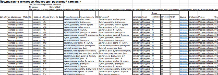 Выбрали тариф "Бизнес". Запустили рекламную кампанию в Яндекс.Директ и Google Ads. Чтобы обойти высокую ценовую конкуренцию, мы использовали не прямые запросы (например, "запчасти чтз цена"), а номенклатурные (например, "18-19-33-1"). Регион сменили с Урала на РФ. Уже через 2 дня клиент отметил увеличение числа звонков.